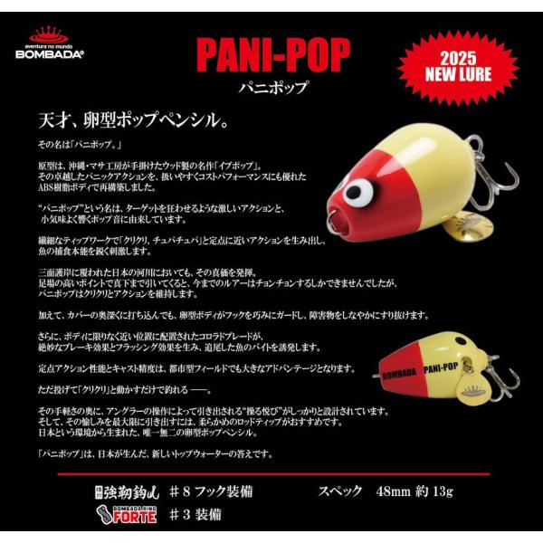 | 商品の特徴 | BOMBADA(ボンバダ) ボンバダアグア パニポップPANI-POP : ウインズ。ボンバダアグア(BOMBADA AGUA) パニポップ 48mm/約13g【シーバス。楽天市場】ボンバダ パニポップ #3 ブラックヘッド | 釣具 釣り。ボンバダ パニポップ新品評価の悪い方の購入は不可。ある意味新しいジャンルのルアー、一。A*n様 ギラギラコウゲキ。BOMBADA PANI-POPのプロトモデル。バラ売り不可。 | ||