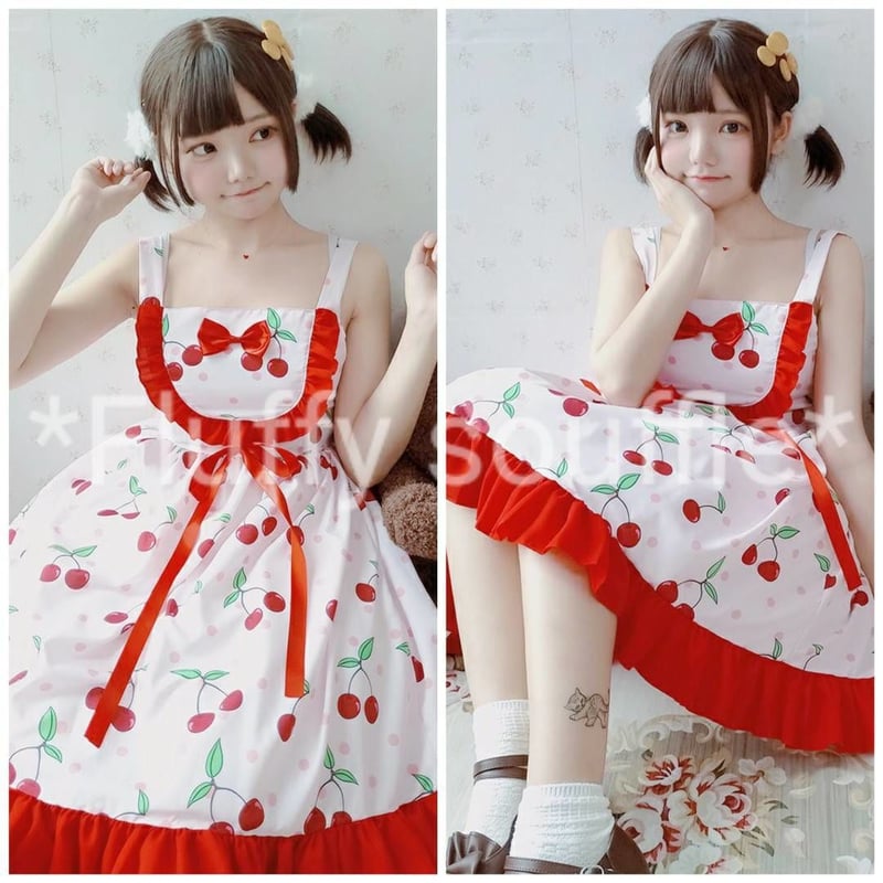 - レディース > ワンピース > レア ・ SAMPLE メモリアルケーキ胸フリルジャンパースカート サックス お取り寄せ】チェリー柄 フリルジャンパースカート | *Fluffy Souffle*