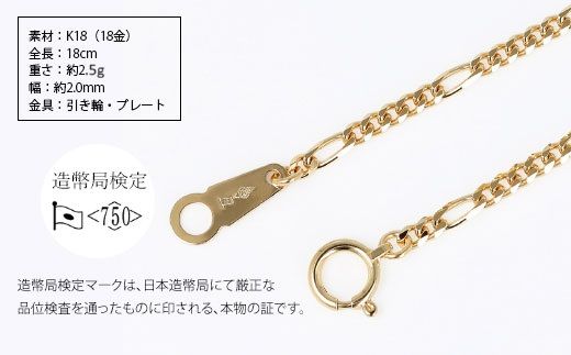 - レディース > アクセサリー > 重さ約26gの18金(k18)を使用したブレスレット 祖母の遺品整理の途中で発見 ブレスレット 金 K18 フィガロ0.6φ 18cm 造幣局検定マーク入り|金