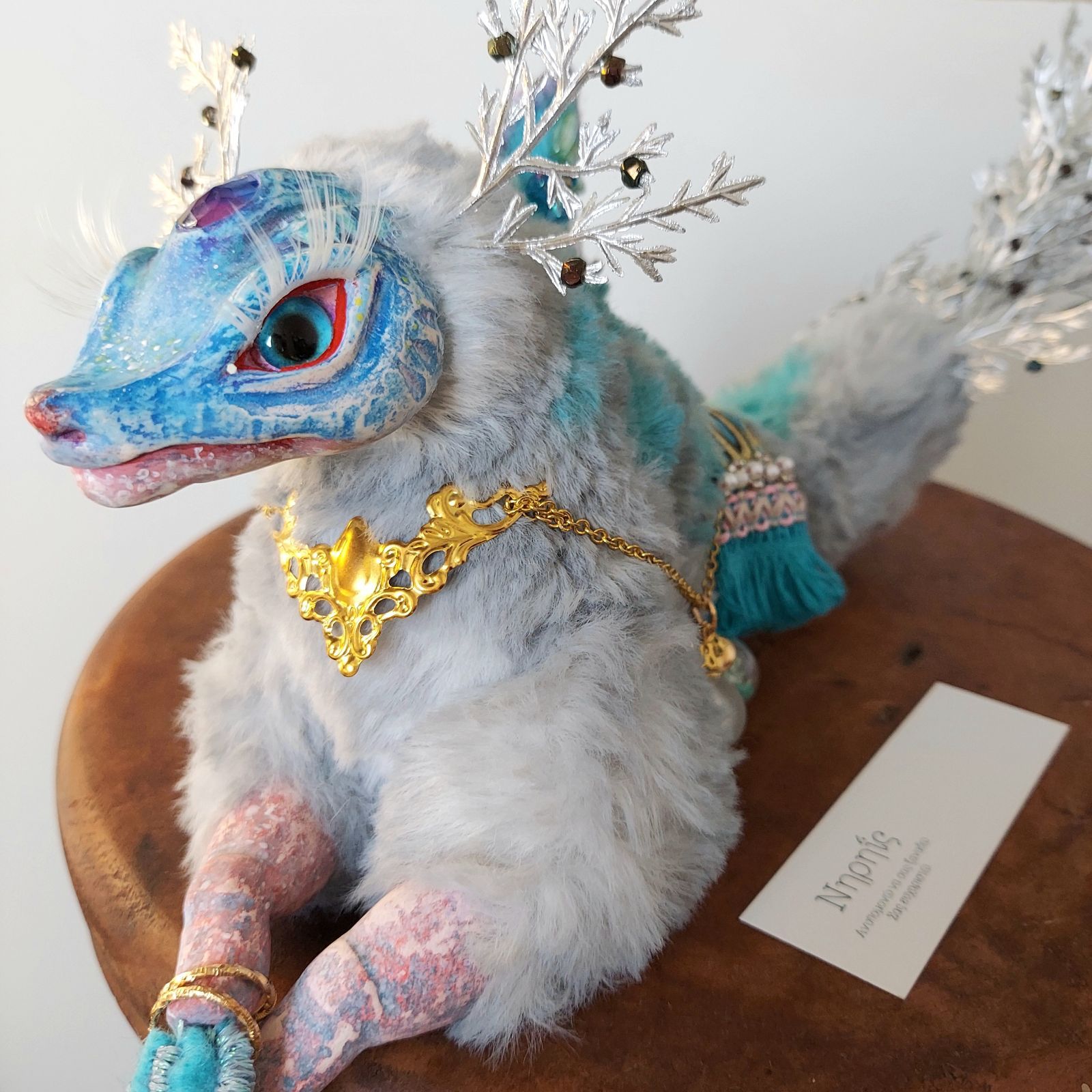 | 商品の特徴 | デネブ 幻獣星龍アートドール ぬいぐるみ琉球蓄光ガラスドラゴン。緑葉雫妖精龍幻獣アートドール龍琉球蓄光ガラスハンドメイドぬいぐるみ。緑葉雫妖精龍幻獣アートドール龍琉球蓄光ガラスハンドメイドぬいぐるみ。23800円↓お得意様特別割20000円↓合言葉クーポン割18000円合計 18000円♥♦他店舗、海外への販売の為、予告無く移動する場合があります★【星龍】デネブ☆白鳥座の星☆天の川の中を羽ばたく白鳥として有名な星☆自ら輝く恒星、1等星から生まれた夜空を泳ぐ龍☆尾ビレに各星が属する星座の印があり、放つ輝きによって主の願いを叶えると言われている☆光を浴びるほどに暗闇で、瞳が眩く光り、見る者に癒しを与えるという☆撫でるほどに良くなつき、主に仕える☆【蓄光ガラスの瞳】★見る程に…吸い込まれそうなブルーの瞳で魅了し、暗闇で不思議な光りを放ちます☆★職人が1つ1つ作り上げた琉球蓄光ガラス使用しています☆色の付いたガラスを溶かし鉄心に丸め、水飴のように溶けた状態のガラスに、銀箔(ぎんぱく)を重ね、特殊な技法で作られた琉球蓄光ガラスを使用しています☆タラマブルー使用☆高級ジャガード生地アクリル毛軽量粘土樹脂粘土アルミワイヤー高級蓄光琉球ガラス(タラマブルー)水晶さざれアクリルビーズ縦 約69センチ横 約8センチ【作品について】お洗濯は出来ません☆アルミ針金を全身に使用している為、体を動かすことが出来ます☆(無理に動かすと破損の原因となりますので、お優しいお取り使いをお願い致します☆)※あくまで観賞用ハンドメイド作品ですので、抜毛、細かな傷、ほつれなどある場合がございます。こ*り様 やぐちせいこ様 Septentrion テディベア アーティストベア。アートドールぬいぐるみ 龍ドラゴン ハンドメイドぬいぐるみ 幻獣。完璧な物をお求めの方は、購入をお控え下さい☆※まんまるんアートドール牧場、Art Doll Forestの作品は、ヤフオク、メルカリ、minneのみ販売しております☆アマゾンなど、その他サイトでの販売は一切しておりませんのでご注意下さい★お手入れは、優しくクシなどでとき指で優しく撫でてセットしてください☆※素人が手縫いで作り上げた作品の為、至らぬ箇所があるかもしれません☆ご承知の上でのご購入をお願い致します☆#まんまるんアートドール牧場#ケモノ#蓄光#アートドール※まんまるんアートドール牧場、Art Doll Forestが製作する全ての作品は、作者に知的財産及び著作権があるものとします。 | ||