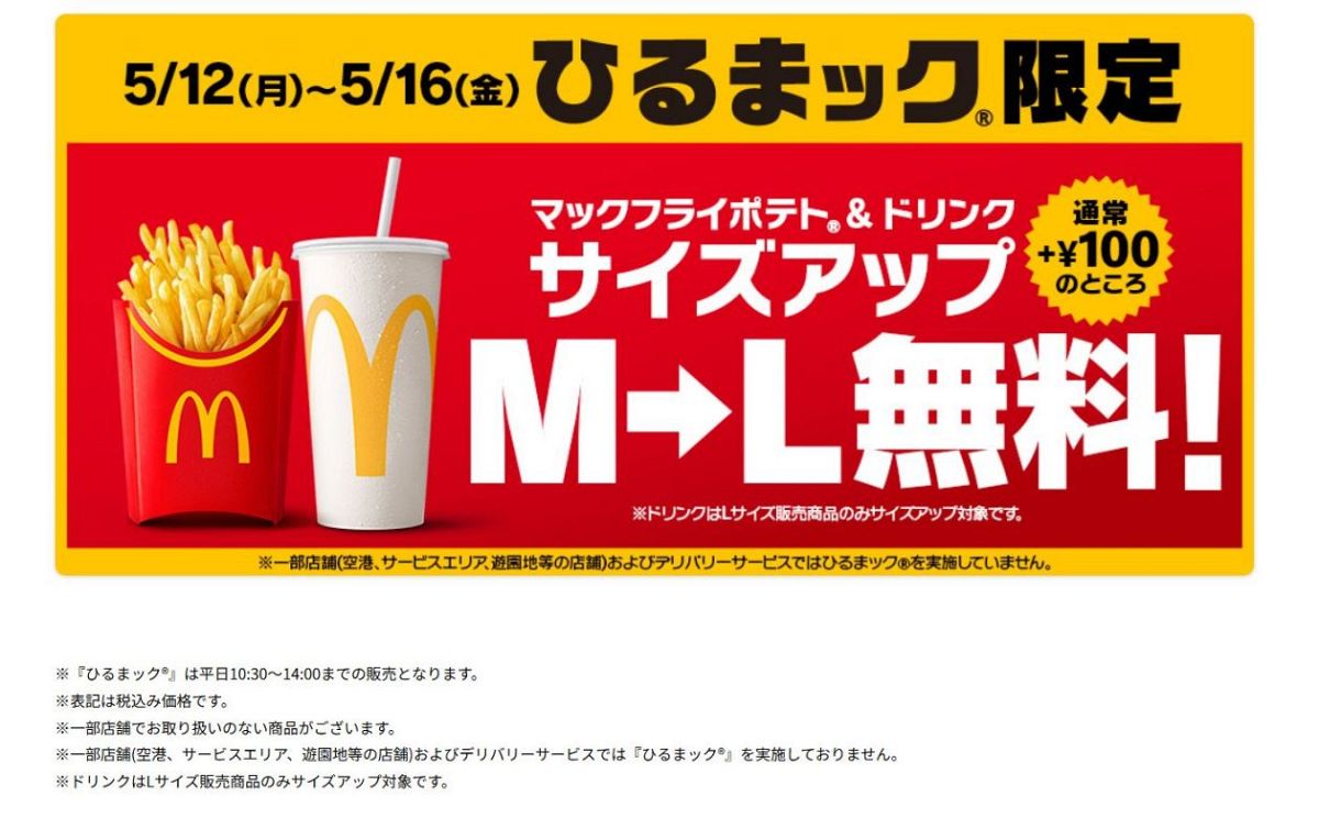 | 商品の特徴 | マクドナルド『ひるまック』、ポテト&ドリンクM→L”無料”に「え。タカラ リカちゃんのマクドナルドショップ – ROBOTROBOT。マクドナルド】5日間限定 ポテト&ドリンク M→Lに無料で増量「ひるまッ。タカラ リカちゃんのマクドナルドショップ – ROBOTROBOT。商品の説明はありません | ||