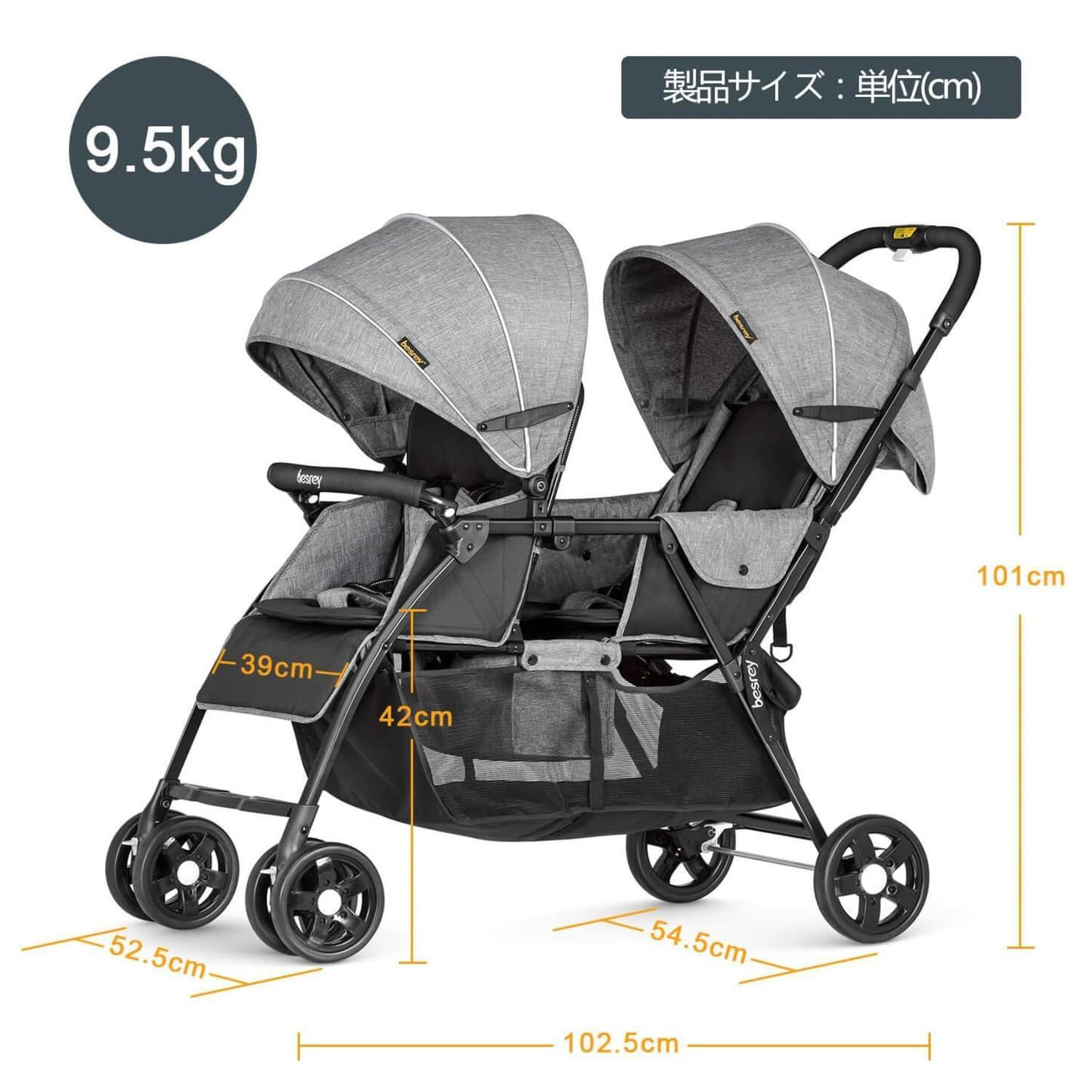 美品 besrey ベスレイ 2人乗り 二人乗り ベビーカー 双子 ツイン 兄弟 新品未使用 besrey ベビーカー 2人乗りベビーカー 双子 兄弟 姉妹 背面
