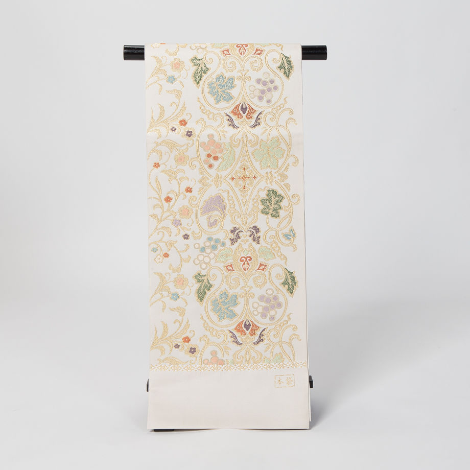 | 商品の特徴 | 極美品】西陣老舗機元「聚楽じゅらく謹製」 変わり織 葡萄鼠色 唐織。極美品】西陣老舗機元「聚楽じゅらく謹製」 「菊牡丹花文様」白地 唐織。高級感溢れる京都伝統美術工芸品|法人、企業名入れ記念品通販店【極彩。日本舞踊家である母 家内 実妹が着用しなくなった着物や帯 呉服屋さんのお付き合いで購入しましたが未使用のお品を破格で出品させていただきます。西陣織シリーズ】に、ついに新作のデザインが入荷いたしました。西陣老舗機元「聚楽じゅらく謹製」変わり織 引箔織併用 葡萄鼠色 唐織刺繍 洒落袋 本袋 六通袋帯のお品でございます西陣織のなかでも機械織や量生産を拒まれ自社機場を設け 洗練された意匠 手作業での加工に拘られる 信用信頼の高い聚楽さんの極上の袋帯のお品でございます葡萄鼠色の本袋に 柄模様の箇所に引箔織の光沢感をお出しになられ 幾何学的文様を唐織刺繍であしらわれた洒落袋のお品でございます帯芯は薄手のを入れてございます【用途】小紋 付下げ 色無地 洒落た訪問着 紬 工藝織 御召など5年前に誂え 2度程は締めてございます特筆すべき難はなく スッキリ!美品でございますあくまでも中古品でございますゆえ 新品をお求めのお方様中古品にご理解をいただけないお方様は恐れ入りますが ご遠慮くださいませ【上代価格】338000円程【素材】正絹 変わり織 引箔織併用 葡萄鼠色 唐織刺繍 洒落袋 本袋 六通袋帯【状態】Aクラスの美品【寸法】幅 八寸三分(31.5cm) 長さ 4m37㎝ ★運送料の価格高騰により 恐れ入りますが4万円以下の品物は 折り畳みましての簡易包装になりますことをご了承くださいませ | ||
